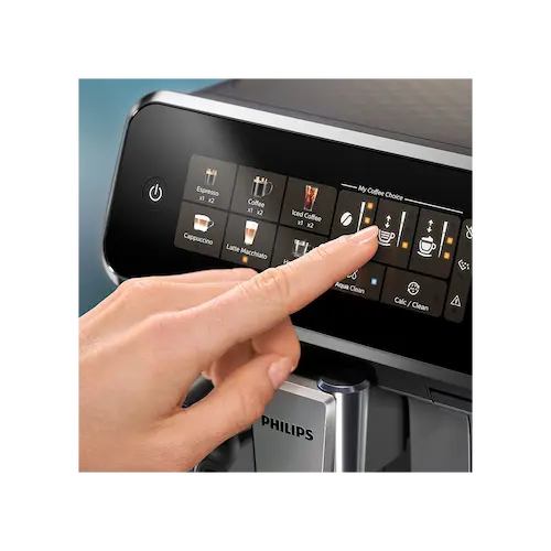 Das intuitive Display des Philips 3300 EP3343/50 LatteGo Kaffeevollautomaten sorgt für eine besonders komfortable und benutzerfreundliche Bedienung. Die klar strukturierte Oberfläche ermöglicht es Ihnen, alle verfügbaren Kaffeespezialitäten, Einstellungen und Funktionen auf einen Blick zu erfassen. Mit wenigen Berührungen wählen Sie Ihre gewünschte Spezialität aus, passen Kaffeestärke, Temperatur oder Milchschaum individuell an und starten den Brühvorgang – ganz ohne komplizierte Menüs oder lange Einarbeitung.